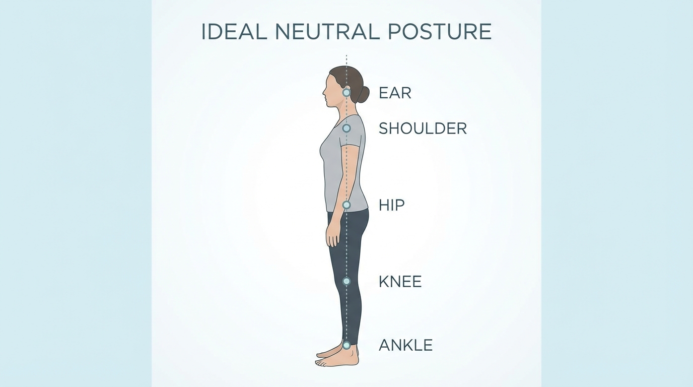Before focusing on how to improve posture, it helps to clearly define what we’re working toward. Good posture isn’t a stiff, rigid stance that requires constant effort to maintain — it’s a balanced, natural alignment that allows your body to function efficiently with minimal strain.